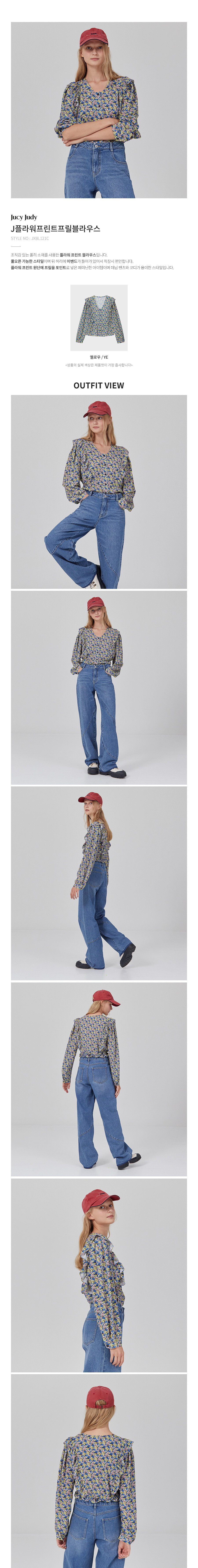 J플라워프린트프릴블라우스