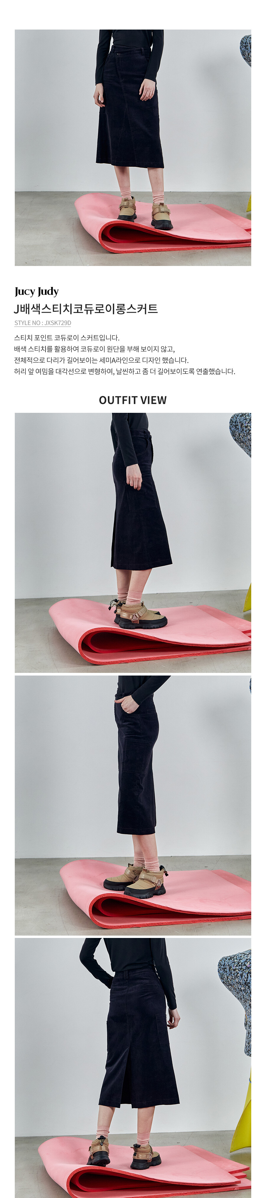 J배색스티치코듀로이롱스커트