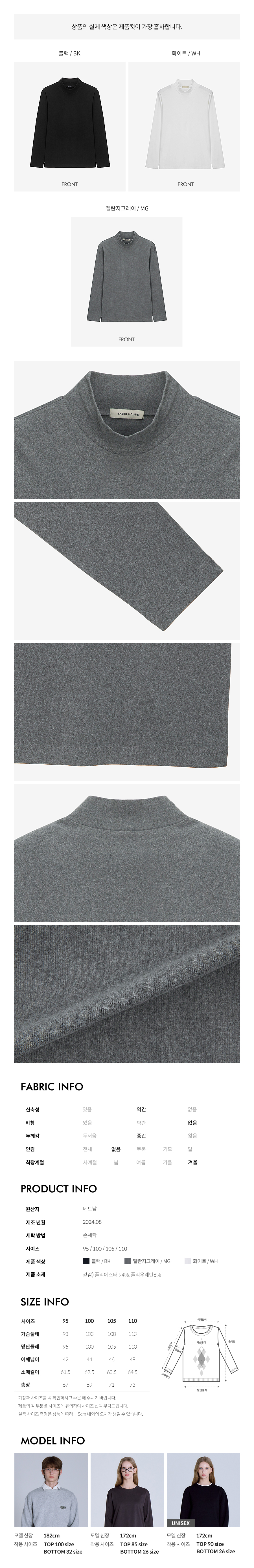 폴리스판 양면 하프넥 긴팔티셔츠