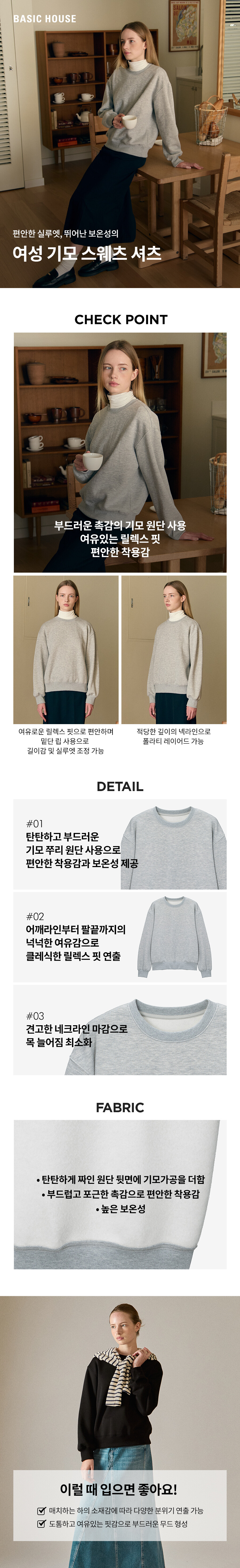 여성 기모쭈리 베이직맨투맨