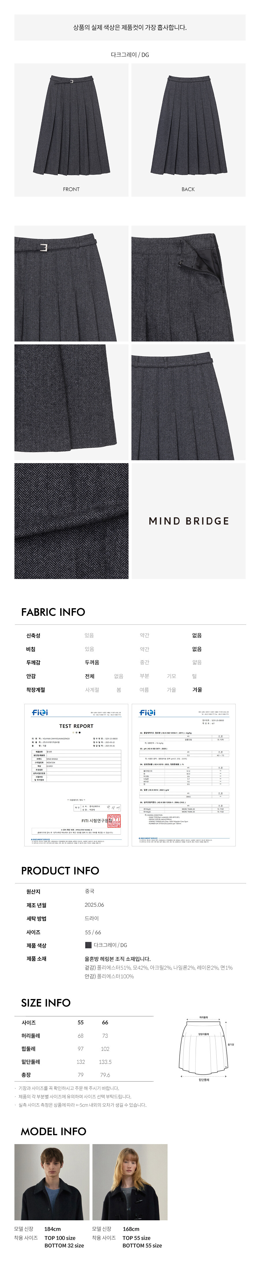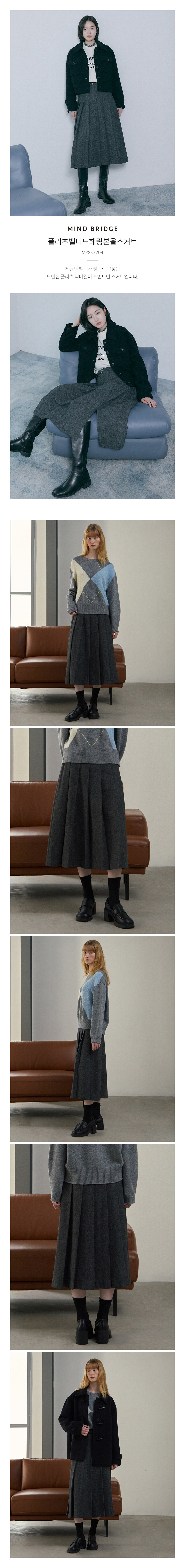 원지안 플리츠벨티드헤링본울스커트