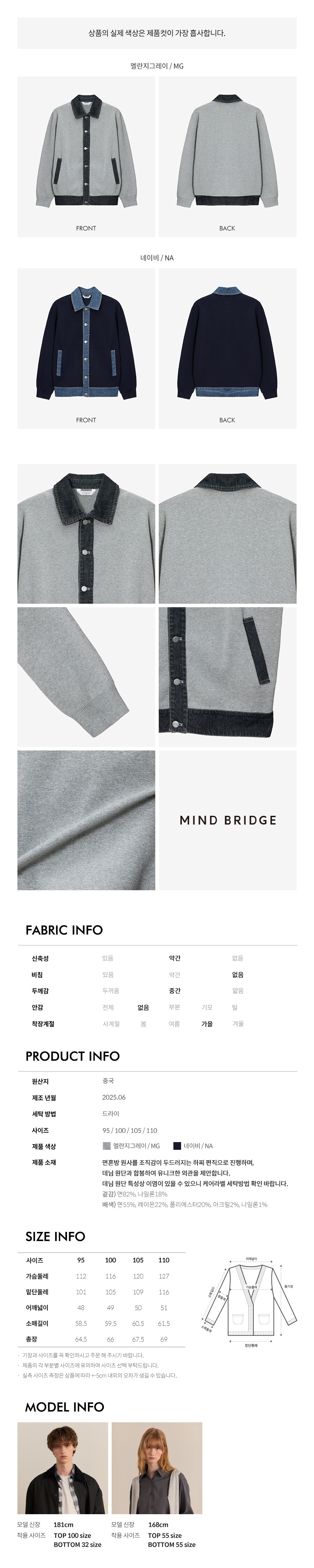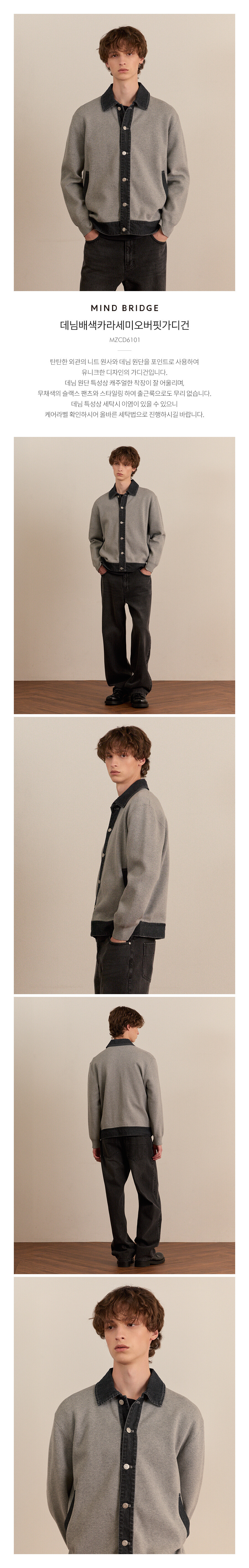 데님배색카라세미오버핏가디건