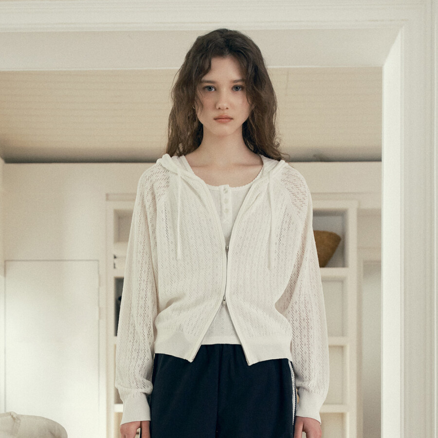 쥬시쥬디 (4/10 예약배송) 린넨펀칭니트후드집업