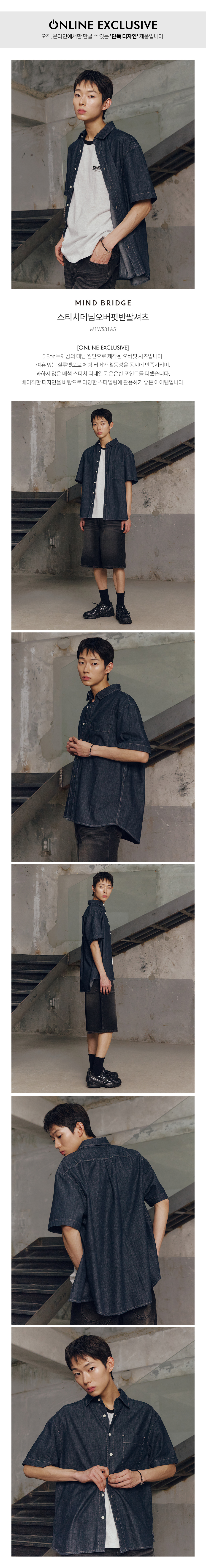스티치데님오버핏반팔셔츠