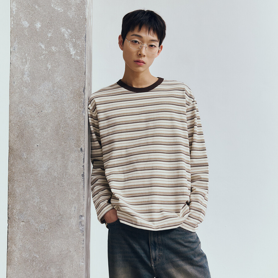 마인드브릿지 멀티스트라이프오버핏티셔츠