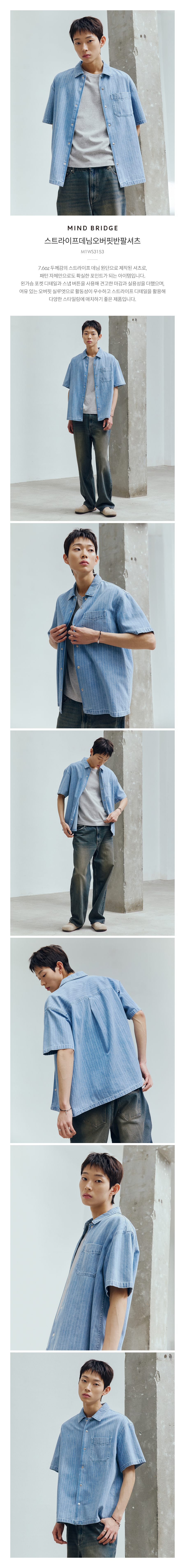 스트라이프데님오버핏반팔셔츠