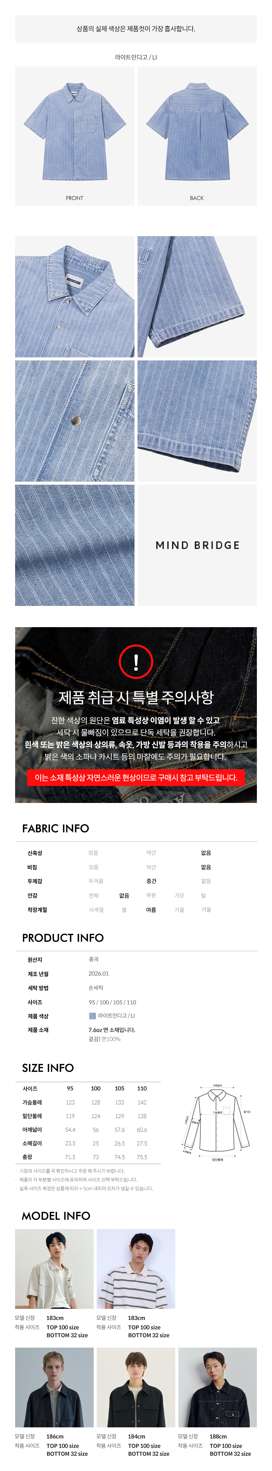 마인드브릿지 엑스트라와이드워싱데님팬츠