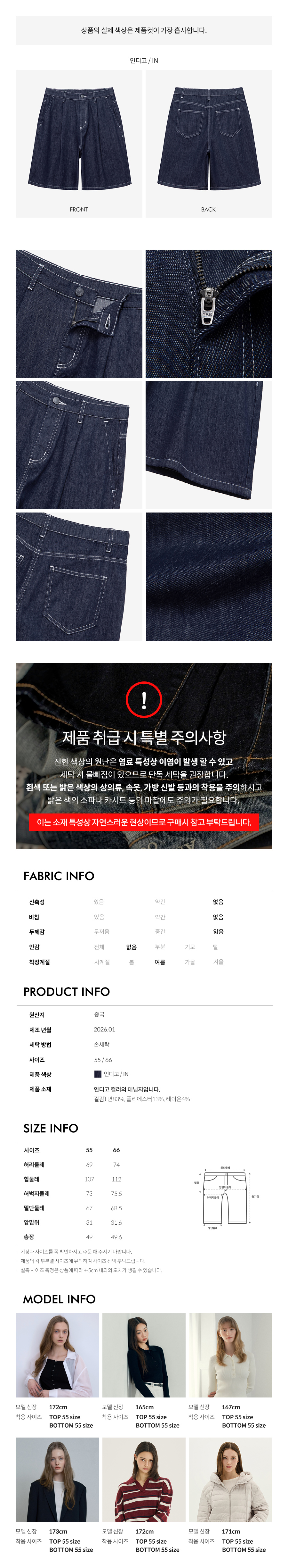 원턱로우데님반바지