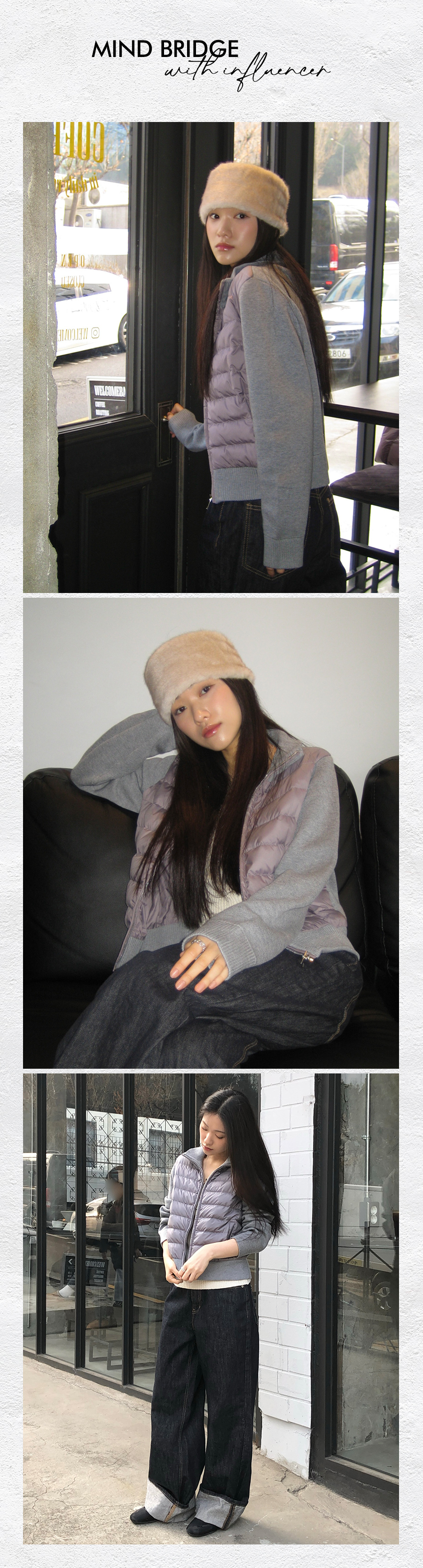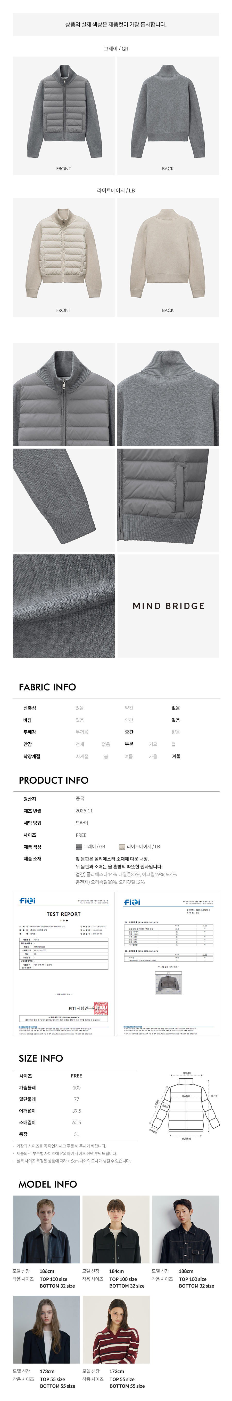 니트배색다운점퍼
