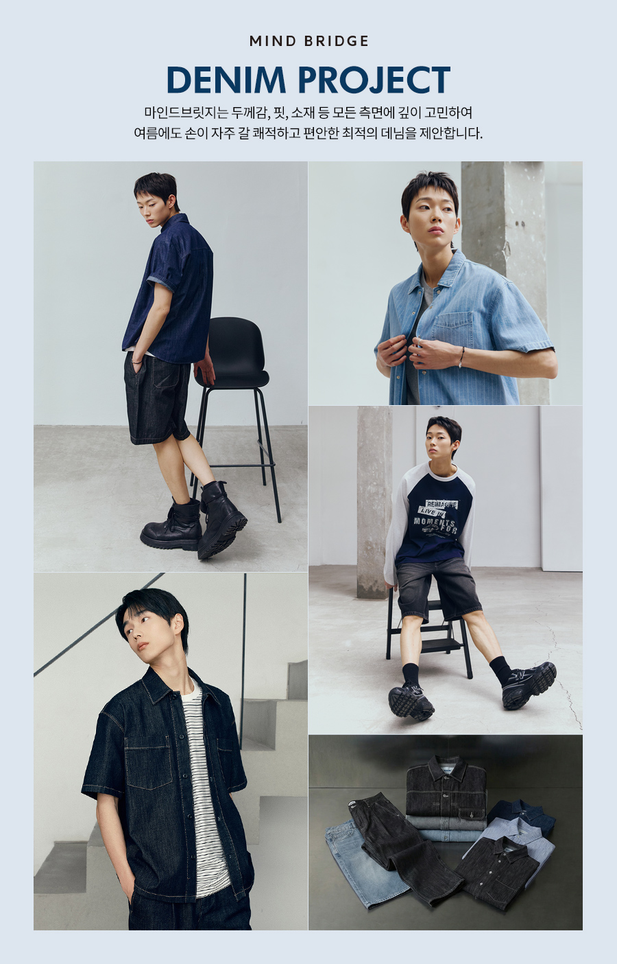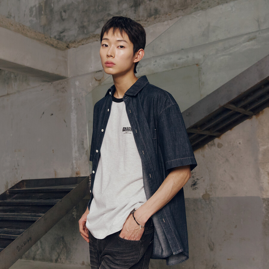 마인드브릿지 스티치데님오버핏반팔셔츠